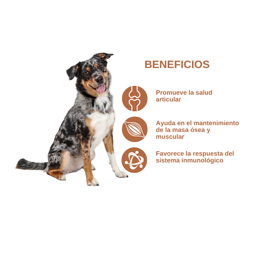 • Enriquecido con Zinc, fundamental para la síntesis de las proteínas y ácidos nucleicos, claves en la inmunidad del canino.